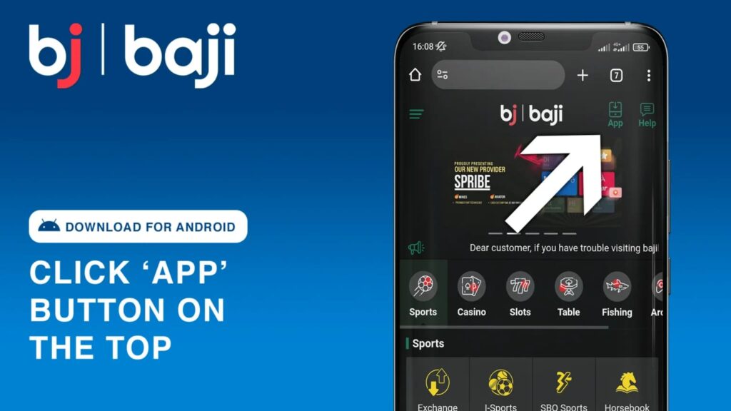 Use the green-colored icon in the rightmost top corner of the page with the Android logo. Find the Baji app download APK link and hit it.