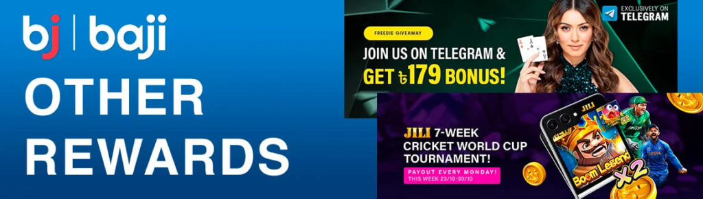 It’s possible to use multiple bonuses at the same time. For instance, you can take advantage of the ৳179 bonus for joining the casino’s original Telegram group and conquer the leaderboard for the 30+ million Bangladeshi taka giveaway offer at the same time. However, there’s only one Baji sign up bonus you can choose.