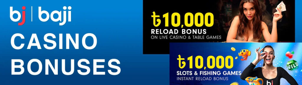 | 100% first deposit bonus for slots and fishing | Deposit at least 500 BDT to receive a Baji bonus with a limit of 1,777 BDT. The wagering stipulation is 12x and there’s a 7 – day time limit from the moment of activation. Only slots and fishing games are eligible |