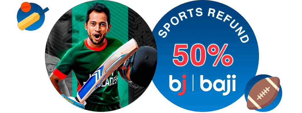 If you opt into this Baji welcome bonus in Bangladesh and lose money during betting on eligible sports markets within the following 24 hours, the company will reimburse you half of your losses up to 1,000 BDT. Only the Exchange Premium, I – Sports, BJ Sports, and SBO Sports markets are eligible for this bonus.